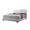 - Box Spring Required, Panel Bed: HB w/LED Light, High Gloss HB, Padded HB/FB/Rails: White Faux Leather, Low Profile FB