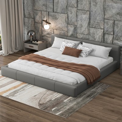 King/California King/Queen Size Platform Bed with Upholstered Headboard and Solid Wood Frame, Gray-Christopher Knight Home