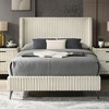 - Sumptuous Wide Wale Corduroy Upholstery The Mavela bed features luxurious wide wale corduroy upholstery in a soothing blue hue, offering a soft, plush texture that elevates comfort and adds a sophisticated touch to your bedroom decor.
