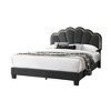 - Modern Platform Bedframe with Elegant Scalloped Details Combines contemporary aesthetics with timeless charm, featuring a streamlined platform base and a scalloped tufted headboard in a pristine white finish for a sophisticated look.