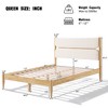 Queen Size Solid Wood Bed Frame with Fleece Upholstered Headboard