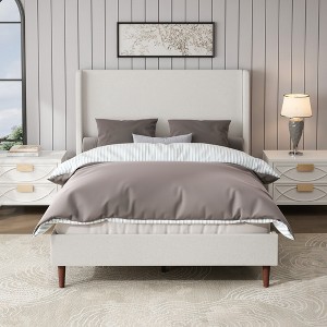Transform your bedroom into a serene retreat with the ModernLuxe High Headboard Upholstered Bed Frame (available in Queen/King Size)! Upholstered in soft, high-quality ivory white chenille cloth, it blends elegant aesthetics with ultimate comfort—perfect for elevating your nightly sleep. Crafted from durable materials (willow technology wood, plywood, and solid wood legs), the frame features 12 sturdy wooden slats that provide exceptional support (no sagging!) and a 500lbs weight capacity for long-lasting reliability. Best of all, it requires no box spring and is easy to assemble. The tall headboard enhances lounging comfort, while solid wood legs boost stability—making this bed frame a practical, stylish addition to any bedroom.