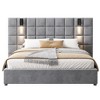 Queen Size Upholstered Platform Bed with Reading Lamp and USB Port