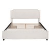 Queen Size Upholstered Platform Bed with Stud Trim Headboard and 4 Drawers