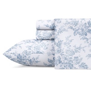 - The Laura Ashley Vanessa Flannel SHEET SET Features A Classic Blue And White Floral Design