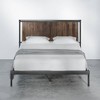 - BEAUTIFULLY CRAFTED - Modern-industrial design features striking wood grain on a paneled headboard with rounded metal framework