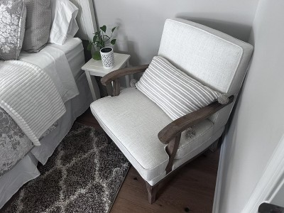 Perfect chair for our guest bedroom Love the look. Nice quality for the price. Cushions are a little hard but it’s great for what we needed it for