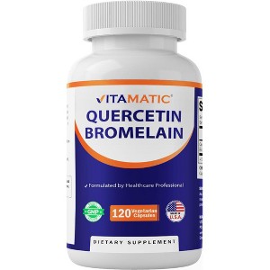 Support your overall health and overall wellness with Vitamatic Quercetin with Bromelain. Each vegetarian capsule combines 500mg of quercetin, with 100mg of bromelain. This potent blend promotes overall vitality and maintaining a healthy, active lifestyle.