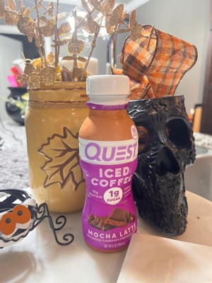 - JOLT OF DELICIOUS. The Quest Mocha flavor Latte Iced Coffee has a creamy, indulgent coffeehouse taste you can enjoy with 1g of sugar and 10g of protein per serving*.