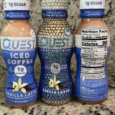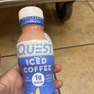 - JOLT OF DELICIOUS. The Quest Vanilla Latte flavor Iced Coffee has a creamy, indulgent coffeehouse taste you can enjoy with 1g of sugar and 10g of protein per serving*.