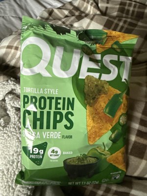 - AT HOME OR ON-THE-GO. Quest™Salsa Verde Protein Chips with 19g of grab-and-go protein* are just right for spicing up the afternoon commute, as a tasty treat at your desk, or a delicious way to refuel after a workout.*