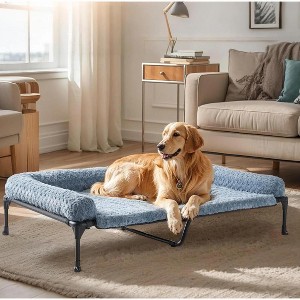 Dog Cots Bed for Large Dogs: The dog bed frame measures 47" x 29" x 9" (120 x 74 x 23 cm) and supports up to 150 lbs, suitable for pets up to 45 inches long. Ideal for Golden Retrievers, Labradors, Rottweilers, Boxers, Huskies, and Dobermans. Rose Velvet Bolster Dog Bed: The fluffy bolster provides excellent neck support, and the cushion mat adds a nice layer of softness. Crafted with a deluxe plush sleeping surface, it is super comfort and calming. The top dog mat also features a non-slip base and secure fastenings for a stable fit Cooling Elevated Dog Bed: Remove the pillow top to create a cooling pet bed. The breathable Teslin mesh allows a refreshing breeze to flow through, keeping pets cool during hot summer days. The off-ground design lifts your pet off wet, hard, dirty floors, relieving joint pressure Durable and Stable: Our dog bed frame features thick powder-coated steel tubing, anti-scratch Teslin mesh, and non-slip rubber feet, ensuring superior stability and high load capacity. Moreover, the pillow top mat is durable enough for naughty dogs Easy Assembly & Care: The bolster pillow is removable and machine washable, while the bed frame can be wiped clean or hosed off. This dog couch bed is easy to assemble with no tools required. Lightweight and portable, it's perfect for both indoor and outdoor use.