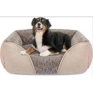 Comfort & Security Edge: Raised four walls and pillow-like rectangular dog bed provide good support and cushion for the dog's head and neck, the super-soft filling offers joint and muscle pain relief. and allowing your puppy to have a comfortable and restful sleep. Low leading-edge design is easy access for small and old dogs. ??Ultra Soft Material: Pet bed is covered in rose swirl short faux fur and cozy suede fabric, which is soft and warm during the winter and effectively retains your pet¡¯s body heat. the bottom and sides stuffed with thickened and eco-friendly pp cotton to create a breathable and comfortable sleeping environment, which keep your dog away from the floor, the surface plush is warm and cozy, In no time, your pet will be snoozing away in the elevated comfort of this dog bed. ??Size Details: Small dog bed for Small dogs up to 15lbs, the outer size is 20"x19"x6"; Medium dog bed for Medium dogs up to 30lbs, the outer size is 25"x21"x8"; Large dog bed for Large dogs up to 40lbs, the outer size is 30"x24"x9"; X-Large dog bed for Jumbo dogs up to 60lbs, the outer size is 35"x25"x9"; XXL dog bed for Large dogs up to 80lbs, the outer size is 42"x30"x10"; Please be sure to confirm the size. ??Washable Dog Bed: Durable pet bed machine washable as a whole. Gentle cycle and thoroughly dried in dryer directly after washing and do not Air dry. Please use your hands to pat, shake the dog bed and wait for 1-2 days to wait it back to fluffy status before using. ??Anti-Slip Bottom: This calming dog bed is equipped with non-slip bottom to keep the pet bed in position and keep your pets safe.