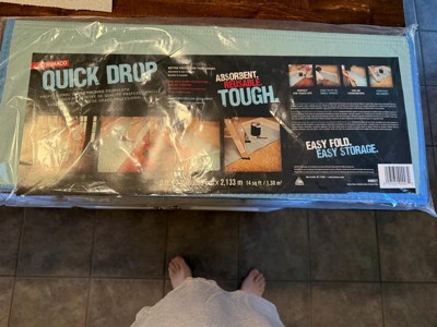 [This review was collected as part of a promotion.] The Quick Drop by Trimaco is a professional grade dropcloth. I have the 2'x7' , it's easy to fold, stays put on carpet for easy touch ups. For my husband it's perfect for covering & protecting counter tops. While doing tile work. This Quick Drop dropcloth is absorbent, reusable, & tough. To get any job done easier.