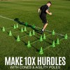 - Hurdles: You can combine the cones and agility poles to create ten complete training hurdles. These are ideal for improving footwork skills and speed off the mark.