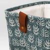 Keep your everyday essentials neatly stored and organized with this Quilted Decorative Basket from Threshold™. This rectangular decorative basket features a green quilted fabric construction with allover leafy print for charming style. Designed with attached faux-leather handles for easy portability, this quilted basket features an open top to let you store anything from books to small toys and beyond.