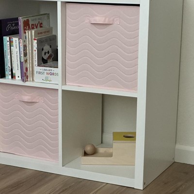 Add extra storage to your little one's space with this Quilted Fabric Cube Storage Bin from cloud island™. This decorative cube storage bin features a light pink quilted fabric construction with wavy texture for fun style. Designed with attached handles for easy portability, this sturdy square-shaped basket is great for stowing toys, blankets and more. Plus, it can be spot cleaned for easy care.