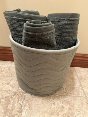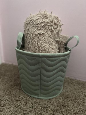 The Quilted Fabric Medium Round Storage Basket by Cloud Island is perfect addition to any baby or child's room. The green is a beautiful soft green color, the basket is soft, yet sturdy and the size is perfect for small toys or swaddling blankets.