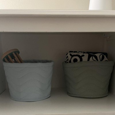 - Quilted fabric round storage bin