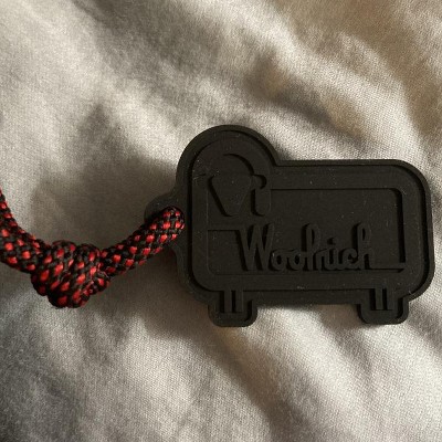 Fluffy white sheep charm with Woolrich embossed on leather? strap shown In advertisments photos missing/ not shipped! Will Woolrich make good on this missing item? or offer for a discounted price to tote buyers?