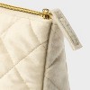 Carry your essentials in style using the Quilted Velvet Pouch Messenger Bag by Spritz™, perfect for gifting. This cream-colored accessory is crafted from soft velvet with a solid pattern, offering a touch of elegance. With a zip closure, it keeps essentials secure, while its compact size makes it easy to carry. Ideal for those who appreciate simplicity, this pouch-style bag is a delightful addition to any collection.