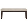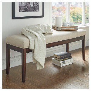 Add a touch of traditional style to your home with this Quinby Linen Bench from Inspire Q. This simple and cleanly designed padded bench features a soft linen fabric padded top with four sturdy wooden legs in a rich dark brown finish. The armless, backless design creates a clean look that works great for entryways, living rooms or even by a walk-in closet. A stable flat top makes this bench great for use as a coffee table, ottoman, or footstool.