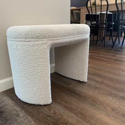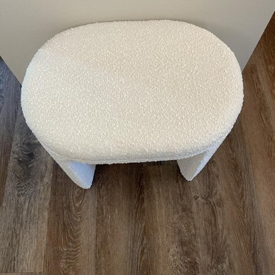 Meet the Quinn Ottoman - it's the perfect blend of modern flair and comfy vibes. Covered in a soft textural cream boucle fabric, it's like a big cozy hug for your feet. And get this, it's not just for putting your feet up - it can double as a coffee table or provide extra seating when your crew drops by. Plus, it won't hog all your floor space! No assembly required. Please note that fabric and wood colors may appear slightly different due to variations in lighting or screen settings.