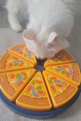 The Quirky Kitty® Pizza Treat Puzzle toy is a great way to keep cats entertained while improving their cognitive abilities, and giving them a fun way to get food or treats. Simply put high quality cat food or cat treats in the pizza slice compartments, and slide the pizza slices to cover some of the openings. Show your cat the toy and let them engage with the toy and figure out how to slide the pizza slices away revealing the food or treats inside! This fun puzzle is a great boredom buster for cats of all ages! Includes North American catnip which can be sprinkled under or around the puzzle to help entice cats to use the toy!