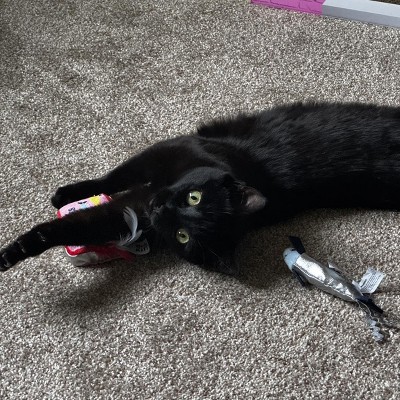 My cat goes absolutely wild for these toys! She’s always been a fan of Quirky Kitty toys because of the silver vine used in them. They really get her going in a way other toys don’t. The little sardines are adorable, and despite how much she rolls around with them, she hasn’t ripped them open yet. They’re on the smaller side, so bunny kicks are a little tricky for her, but that doesn’t stop her from trying. She swats, chases, and wrestles with them nonstop. If your cat loves silver vine or gets bored with regular catnip, these are definitely worth a shot!