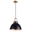 Finish Color: Matte Black/Aged Brass, Width: 15", Height: 16.25", Hanging Method: Cord, Lamping Type: Incandescent, Number Of Bulbs: 1, Wattage: 100 Watts, Moisture Rating: Damp Rated, Desc: The 15" Transitional pendants have a smooth, rounded dome shade fixed to a crown-like bracket. Three colorways are offered for this modern take on classic compostion. Requires 1 - 100 Watt / Medium Base Bulb / Damp Listed / Height adjustable with 10' power cord. ,