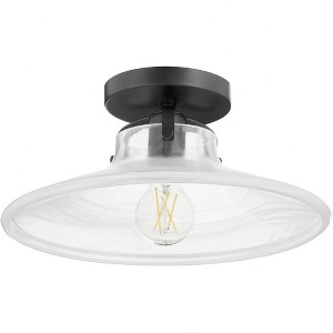 Finish Color: Matte Black, Width: 13", Height: 6", Lamping Type: Incandescent, Number Of Bulbs: 1, Wattage: 60 Watts, Moisture Rating: Dry Rated, Desc: A hat-shaped marble faux alabaster glass shade is connected to a weighty chain with carabiners and brackets with a matte black finish. These dual mounts can be installed with the chain or directly fixed to the ceiling. Requires 1 - 60 Watt / Medium Base Bulb / Faux Marble Alabaster Glass Shade / Dual Mount - 8 ft. of chain included / Damp Listed. ,