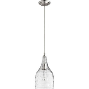 Finish Color: Satin Nickel, Width: 7.5", Height: 13.5", Hanging Method: Cord, Number Of Bulbs: 1, Wattage: 60 Watts, Dimmable: No, Moisture Rating: Dry Rated, Desc: 7.5 Inch One Light Pendant Features: Product Type: Pendant / Style: Transitional / Finish: Satin Nickel / Shade Color: Clear . ,