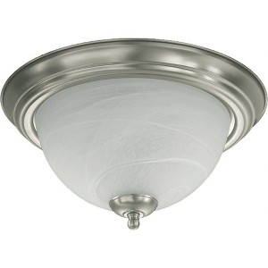 Finish Color: Satin Nickel, Width: 13.5", Height: 6", Depth: 6", Hanging Method: Flush, Number Of Bulbs: 2, Wattage: 75 Watts, Dimmable: No, Moisture Rating: Damp Rated, Desc: Shade Included: Yes. ,