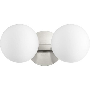 Finish Color: Satin Nickel, Width: 14", Height: 6", Depth: 7.75", Number Of Bulbs: 2, Wattage: 60 Watts, Dimmable: No, Moisture Rating: Damp Rated, Desc: Shade Included: Yes. ,