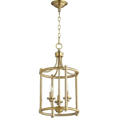 Quorum Lighting Bennett 3-Light Pendant, Aged Brass, 12.5W x 17.25H, Stem Hanging, Dry Rated