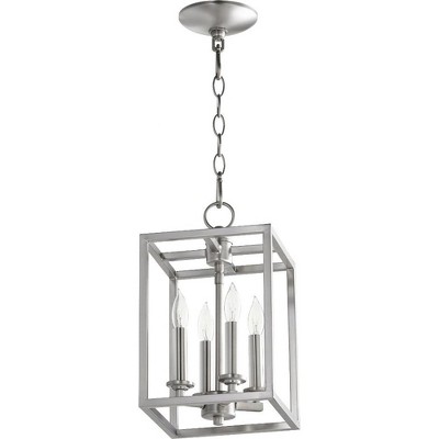 Collection: Cuboid, Finish Color: Polished Nickel, Width: 8", Height: 14", Number Of Bulbs: 4, Wattage: 60 Watts, Dimmable: No, Moisture Rating: Dry Rated, Desc: Cuboid - Four Light Large Entry Pendant Features: Product Type: Entry / Style: Quorum Home Collection / Finish: Aged Silver Leaf . ,