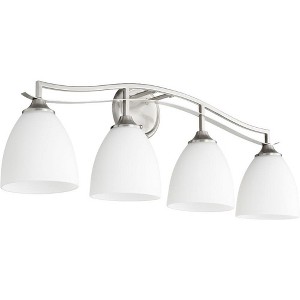 Introducing the Jardin Collection by Quorum Lighting. This stunning fixture features a sleek Satin Nickel finish, adding a touch of modern elegance to any space. With a width of 30" and a height of 10.25", it is the perfect size to make a statement without overwhelming the room. The depth of 5.75" ensures a compact design that fits seamlessly into any decor. With four bulbs and a wattage of 100 Watts, this fixture provides ample lighting for any room. Although not dimmable, the Jardin Collection is damp rated, making it suitable for use in bathrooms or other moisture-prone areas. The shade is included, completing the look and adding a touch of sophistication. Trust Quorum Lighting, a reputable manufacturer, to deliver quality and style with the Jardin Collection.