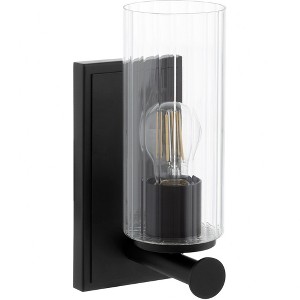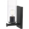 Collection: Juniper, Material: Steel, Finish Color: Matte Black, Width: 4.75", Height: 11.5", Depth: 6", Height From Outlet Box: 7.25", Backplate Width: 4.75", Backplate Length: 9", Lamping Type: Incandescent, Number Of Bulbs: 1, Wattage: 100 Watts, Moisture Rating: Damp Rated, Desc: Tamara�s first home to air on Bargain Mansions was Juniper. She and her father worked on this home together, and at the end of the build, her father purchased the home. This home�s French chateau design and masculine feel inspired the Juniper collection of linear pendants, wall mounts, vanity lights, and chandeliers. Cylindrical discs details elevate classically shaped arms in the Juniper vanity lights and wall mounts. Slender, clear glass shades echo the silhouette of the frame, supporting a clean, luxurious tone. Wall mount options of 1 or 2 light arrangements and an aged brass or matte black finish provides flexibility for your dining room, home office, or hallway designs.,