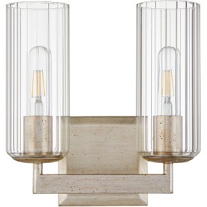 Collection: Merrick, Finish Color: Aged Silver Leaf, Width: 10.25", Height: 10.75", Depth: 5", Lamping Type: Incandescent, Number Of Bulbs: 2, Wattage: 60 Watts, Moisture Rating: Damp Rated, Desc: The Merrick family offers a simple elegance with straightforward designs comprised of right angles and smooth finishes. Aged silver leaf or matte black finished frames support transitional d�cor in any room. With options of vanities, wall mounts, chandeliers, and entry lights, the Merrick family offers a robust array of choices. Requires 2 - 60 Watt / T10 Medium Base Bulbs / Damp Listed / Clear Fluted Glass Shade. ,