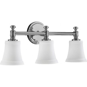 Collection: Rossington, Material: Glass, Finish Color: Chrome, Width: 21.5", Height: 9", Depth: 6", Number Of Bulbs: 3, Wattage: 100 Watts, Dimmable: No, Moisture Rating: Damp Rated Desc: Shade Included: Yes. , Material: Glass, Finish Color: Chrome, Width: 21.5", Height: 9", Depth: 6", Number Of Bulbs: 3, Wattage: 100 Watts, Dimmable: No, Moisture Rating: Damp Rated