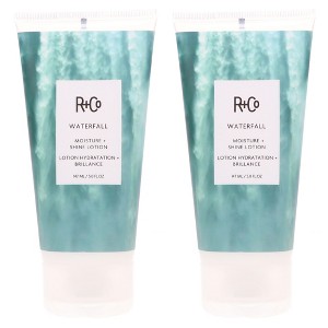 - R+Co Waterfall Moisture + Shine Lotion gives hair a glossy finish and makes it softer and manageable.