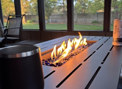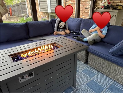 - 43-Inch Fire Table: The 43-inch fire table offers plenty of space to hold drinks, snacks, and appetizers for your party or a cozy evening outdoors. Don't make your guests hold their drinks all night—create the perfect patio hangout where everyone can sit, relax, and enjoy good company.