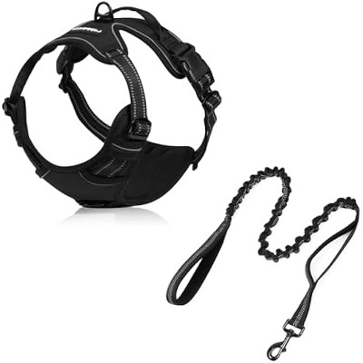 rabbitgoo Dog Harness for Medium Dogs No Pull, Medium Dog Vest with Bungee Shoulder Straps, Reflective Dog Walking Harness with Handle & 2 Metal Clips, Belly Adjustable, Soft Padded (Red, M)