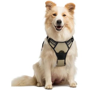 rabbitgoo Dog Harness No Pull with 2 Leash Clips, Control Handle for Medium Sized Dogs, Beige, M