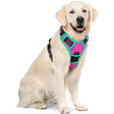 rabbitgoo Dog Harness No Pull with 2 Leash Clips, Oxford No Choke Pet Vest with Easy Control Handle for Large Dogs, Blue & Hot Pink, M