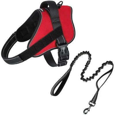 rabbitgoo Dog Harness with 5.2FT Tactical Bungee Leash, No Pull Oxford No Choke Pet Vest with Easy Control Handle for Large Dogs