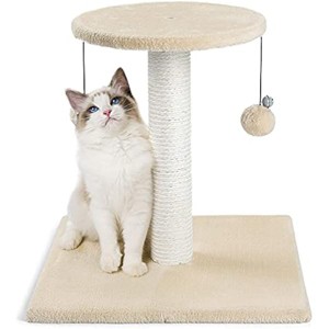 rabbitgoo Small Cat Scratching Post for Kittens, 17" Kitten Scratchers for Indoor Cats, Sisal Cat Post with Perch & Toys, Kitten Scratch Post for Small Cats with Balls, Plush Covered