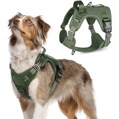 rabbitgoo Tactical Dog Harness Medium Sized Dog, Vest with Handle & Molle, Easy Control for Training Walking, Adjustable Reflective Straps, Red, M