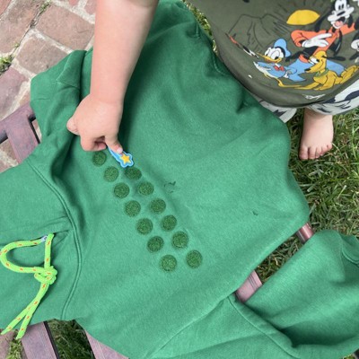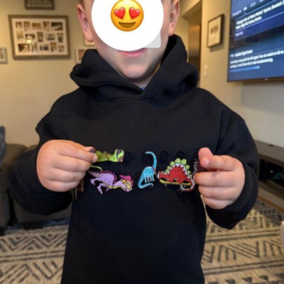 [This review was collected as part of a promotion.] This kids hoodies is very quality, it reminds me of how old sweat shirts that last forever were made. My toddler loved picking out and decorating the front with patches. The velcrow is very tough and had help the patches on very securely. The color is very vibrant. The size ran a little small, my toddler typically wears a size 4T so that’s what I ordered but it seems a little tight but still fits. I received an incentive to write this review.