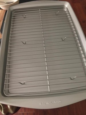 Rachael Ray 13"x19" Nonstick Bakeware Jumbo Cookie Pan with Roasting Rack Silver: Steel, Even-Heating, Oven-Safe, Hand Wash